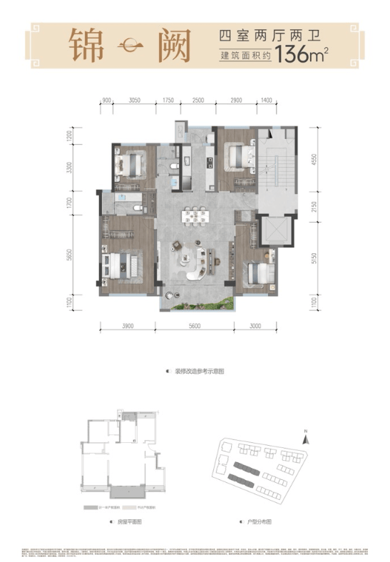 此户型为社区的旗舰作品,主打“阔境奢宅”的居住体验。四房两厅两卫的格局更为从容大气,客厅、卧室等主要功能空间尺度显著升级,为家庭成员提供了更宽敞的活动与休憩区域,充分满足多代同堂家庭对空间尺度、居住私密性与生活气度的终极向往。